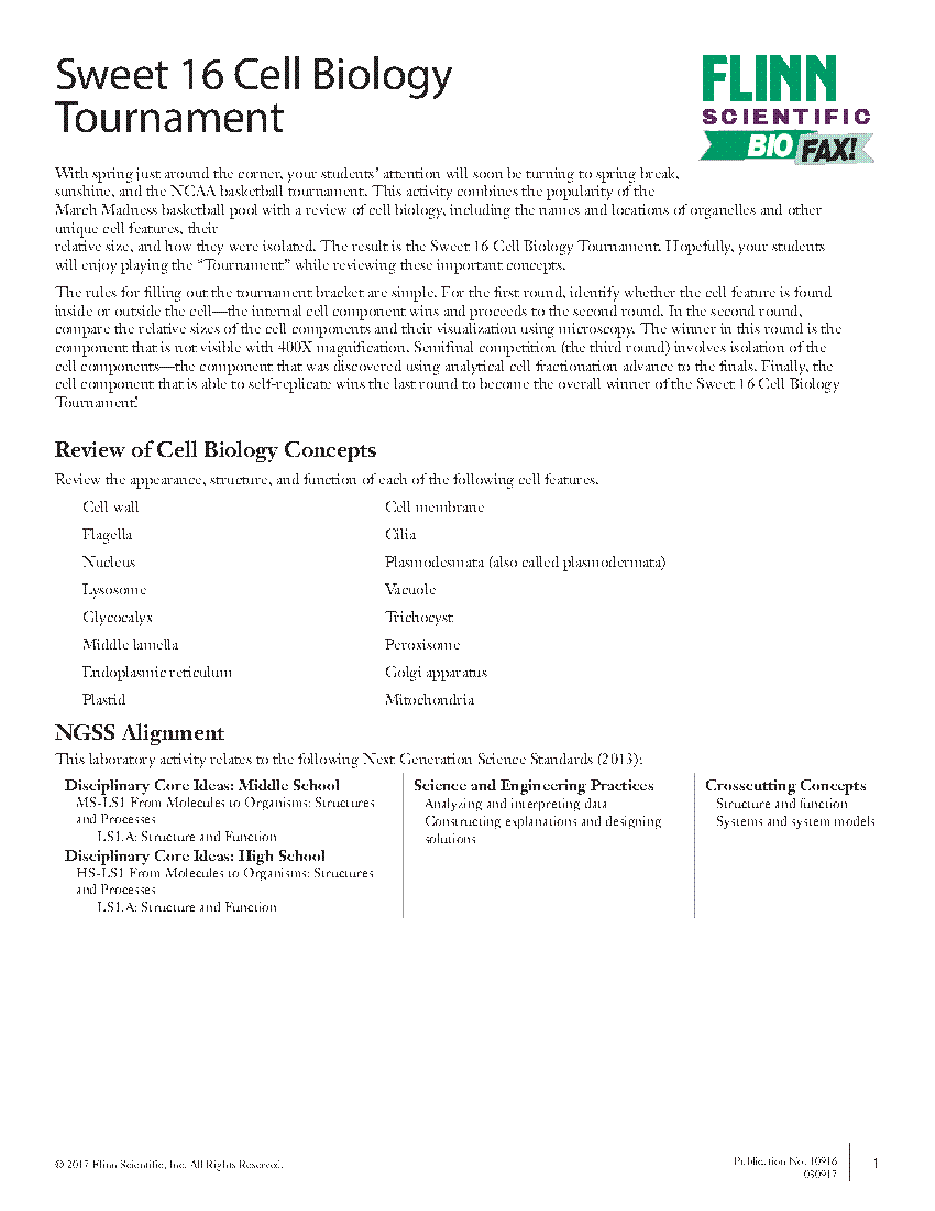Sweet 16 Cell Biology Tournament Flinn Scientific